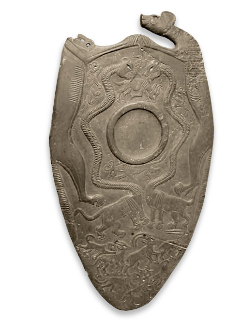 peculiar flat objects of slate, usually rudely fashioned to represent an antelope, or a tortoise, or a bat, were used as palettes upon