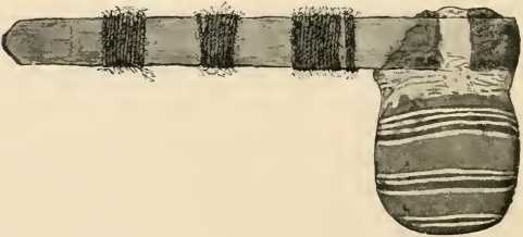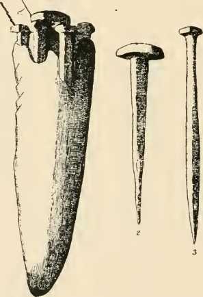 body was decapitated, the head preserved, and the rest of the body consumed on a funeral pyre. Strings of perforated shells and deer’s teeth, worn during life as necklaces or chaplets, were found buried with the skulls. On the skull of a little child hundreds of shells lay close together, placed there, no doubt, by some sad, affectionate hand.