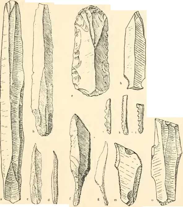 No Azilian harpoons nor painted pebbles were associated with the skulls, but the little geometric Hints known as Tardenoisian, which belong to the same age as the Azilian, were plentiful enough.